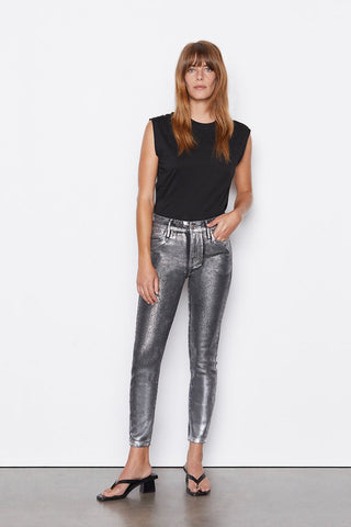 Frame - Le Cropped Mini Boot Noir Croc Coated