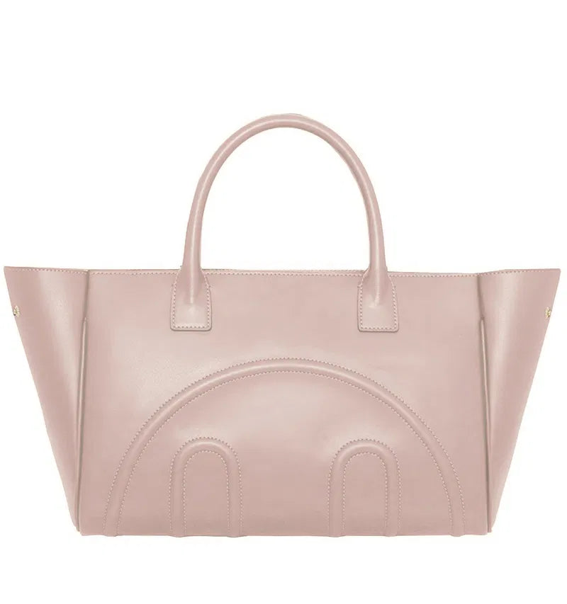 Hill and Friends Hide and Seek Handbag in Light Pink with Pale Gold Hardware features a hidden trapunto happy face detail on the front and celebrates the use of minimal hardware. The bag zip top, basefeet and side gusset snaps, inside is a calf suede lining with a slide pocket.