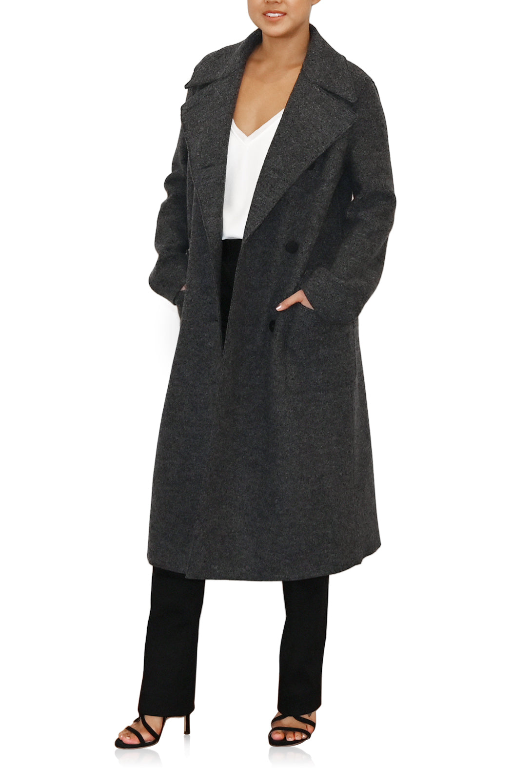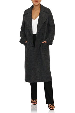 This Woman's D.B Military Coat Boiled Wool in Anthracite is a double-breasted design cut to a straight fit. Featuring a six-button closure, notched lapels, a mid-length and straight hem.