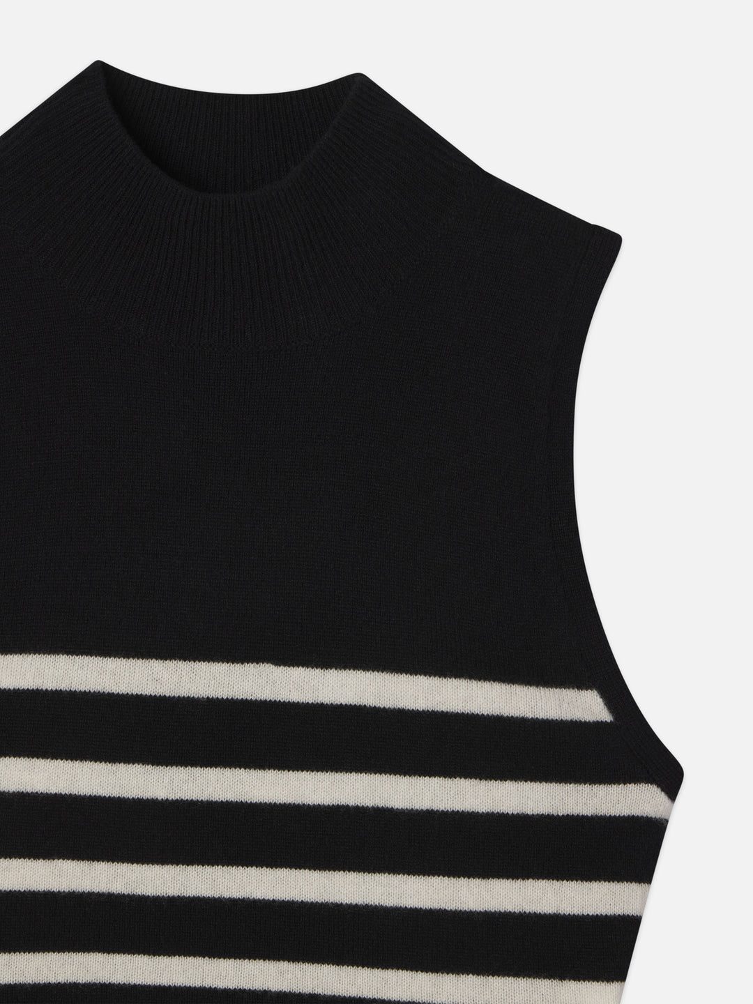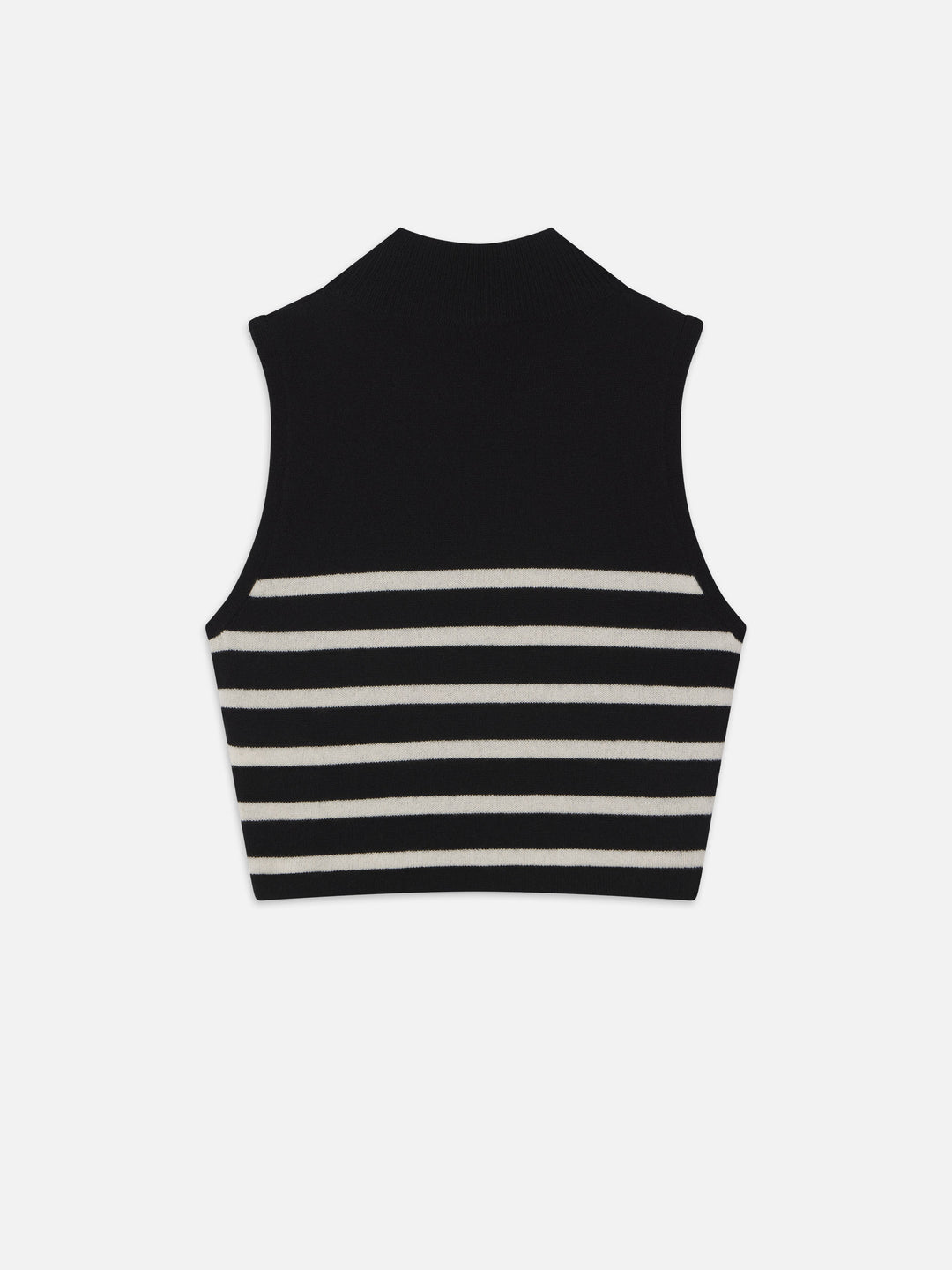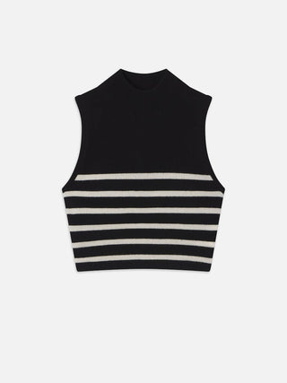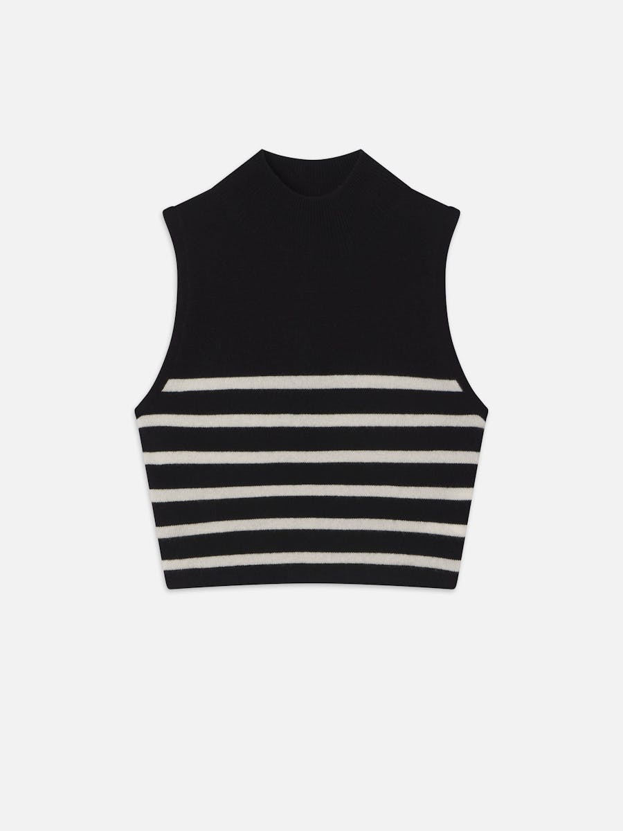Ideal for transitional, in-between weather, this striped sweater has a sleeveless design with a cropped hem that's perfectly suited for a high-waisted trouser, denim, or skirt. Take the chic cashmere piece into the winter with a fitted long-sleeve tee beneath.