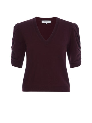Frame - Ruched V-Neck Cashmere Sweater in Deep Burgundy