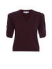 Ruched V-Neck Cashmere Sweater in Deep Burgundy