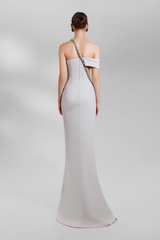 Gemy Maalouf - Beaded Asymmetrical Neckline Gown