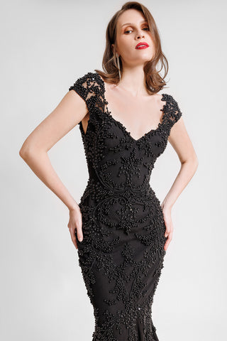 Gemy Maalouf - Mermaid Beaded Dress in Black