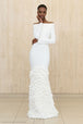 The Cashia Gown by Greta Constantine is an exquisite off-the-shoulder design that exudes modern elegance. Featuring a sleek, form-fitting silhouette, this gown is elevated by dramatic tiered ruffle trim cascading along the hem, creating a statement-making finish. Perfect for formal events, it combines timeless sophistication with bold, contemporary detail.