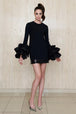 The Greta Constantine Gillenia Dress is a relaxed-fit mini dress featuring dramatic ruffle cuffs and a round neckline. Its simple silhouette is elevated by the bold statement sleeves, making it a standout piece for a special occasion.