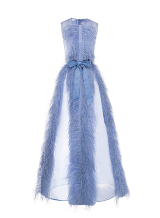 Introducing the Huishan Zhang Beau Gown, perfect for galas, weddings, and other special occasions. This glamorous gown features feather embellishments, making it unique and fun. The combination of elegance and flair will have you looking your best.